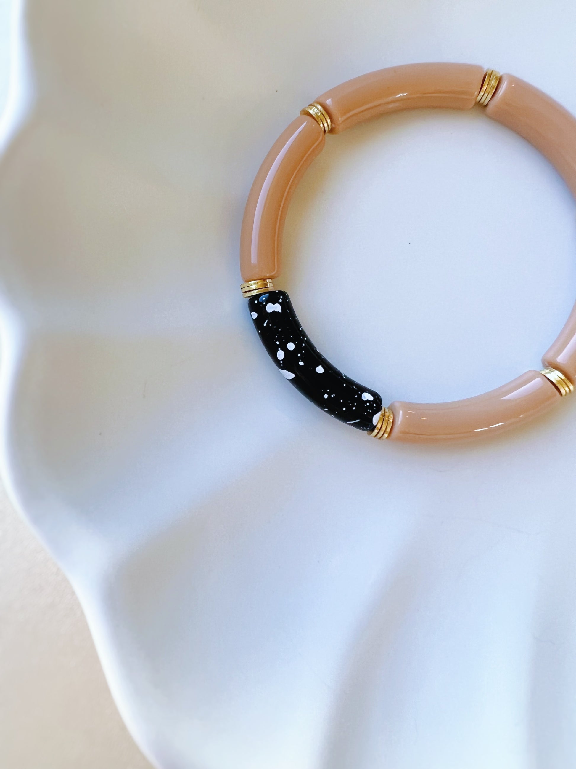 ARTIST bracelet is made with high quality beads and beautiful 18K Gold plated accents. Wear it alone or stack it with other pieces from our collection and create your own stack!