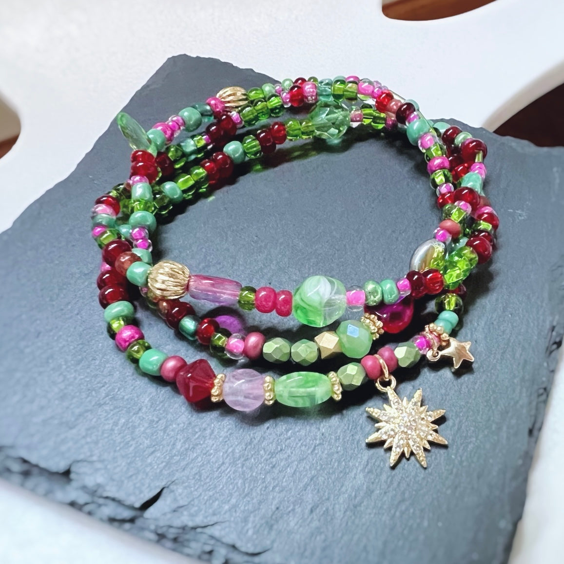 Part of the Wonders Collection, AURORA will transport you to the magnificent atmosphere of Aurora Borealis. For the best styling, wrap it around your wrist 3 times. This bracelet is stretchy and designed to be worn loose not tight.