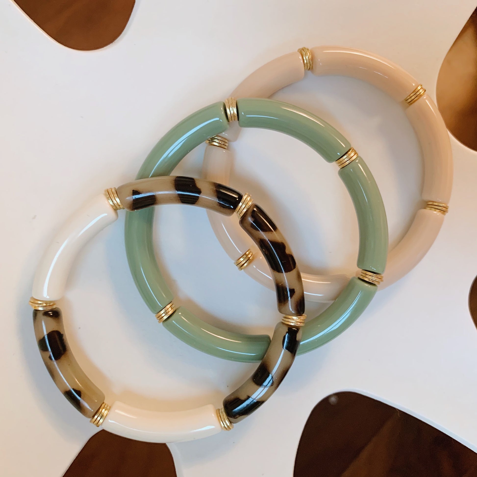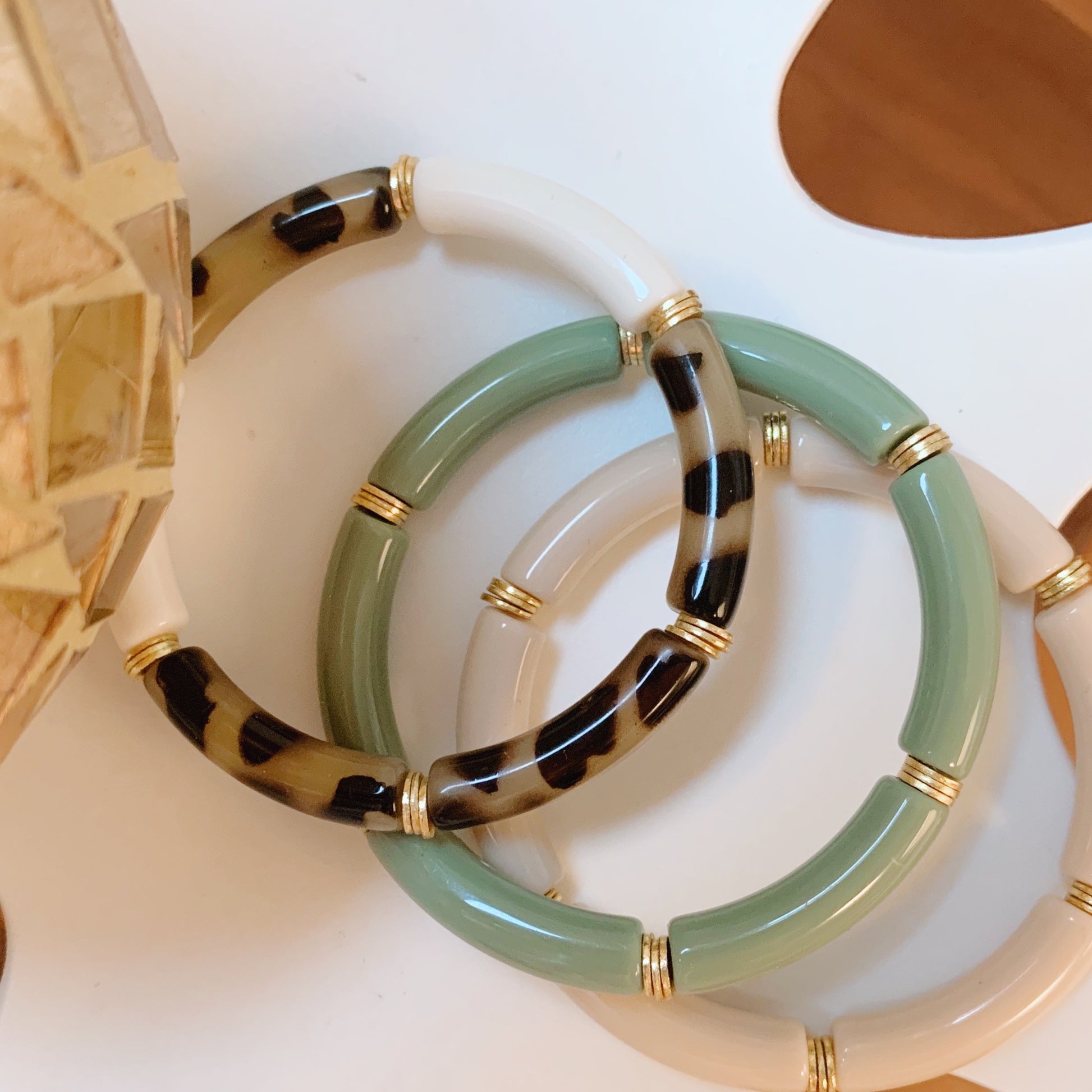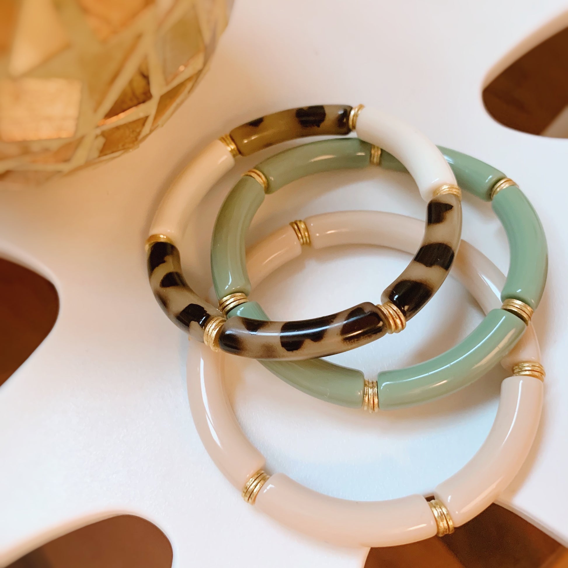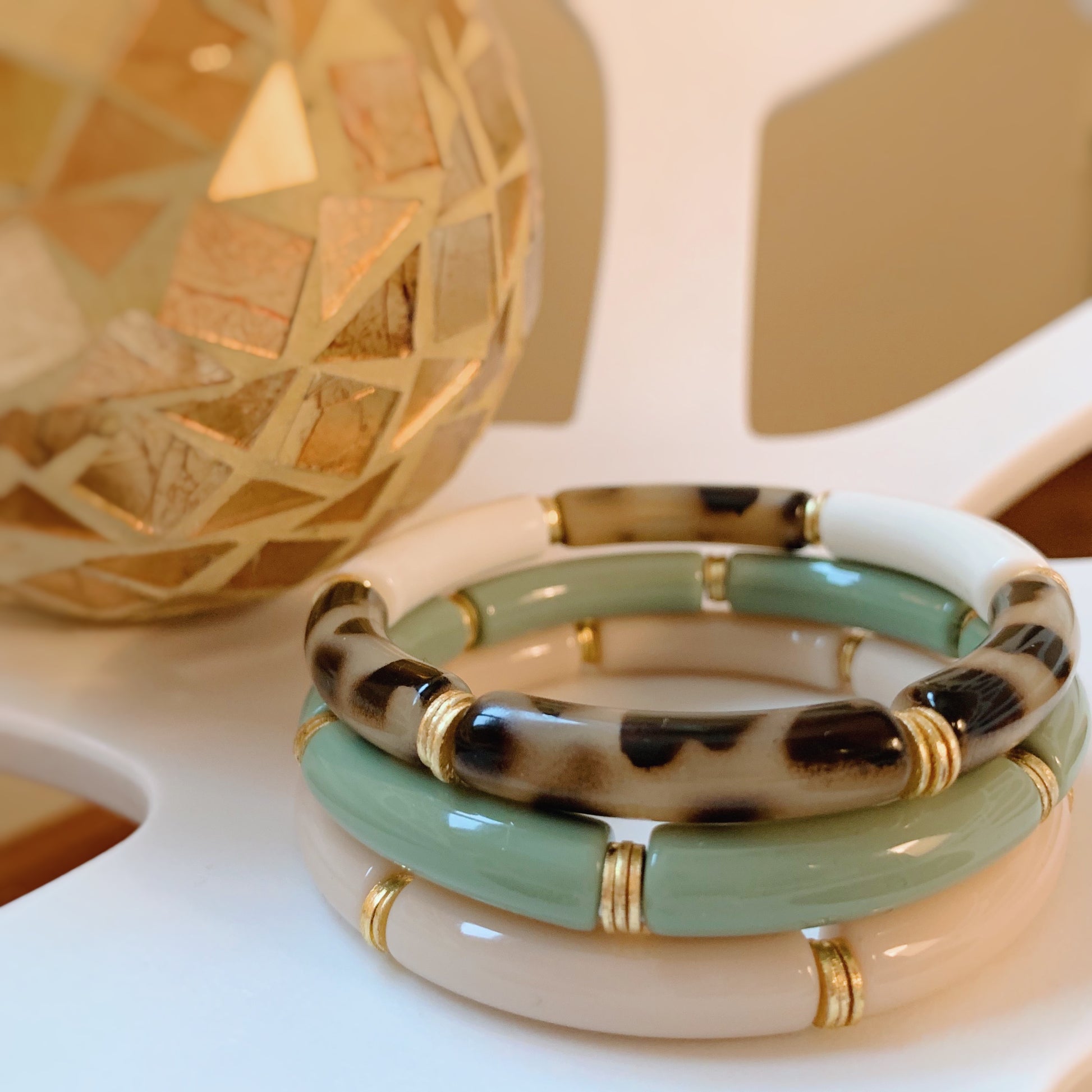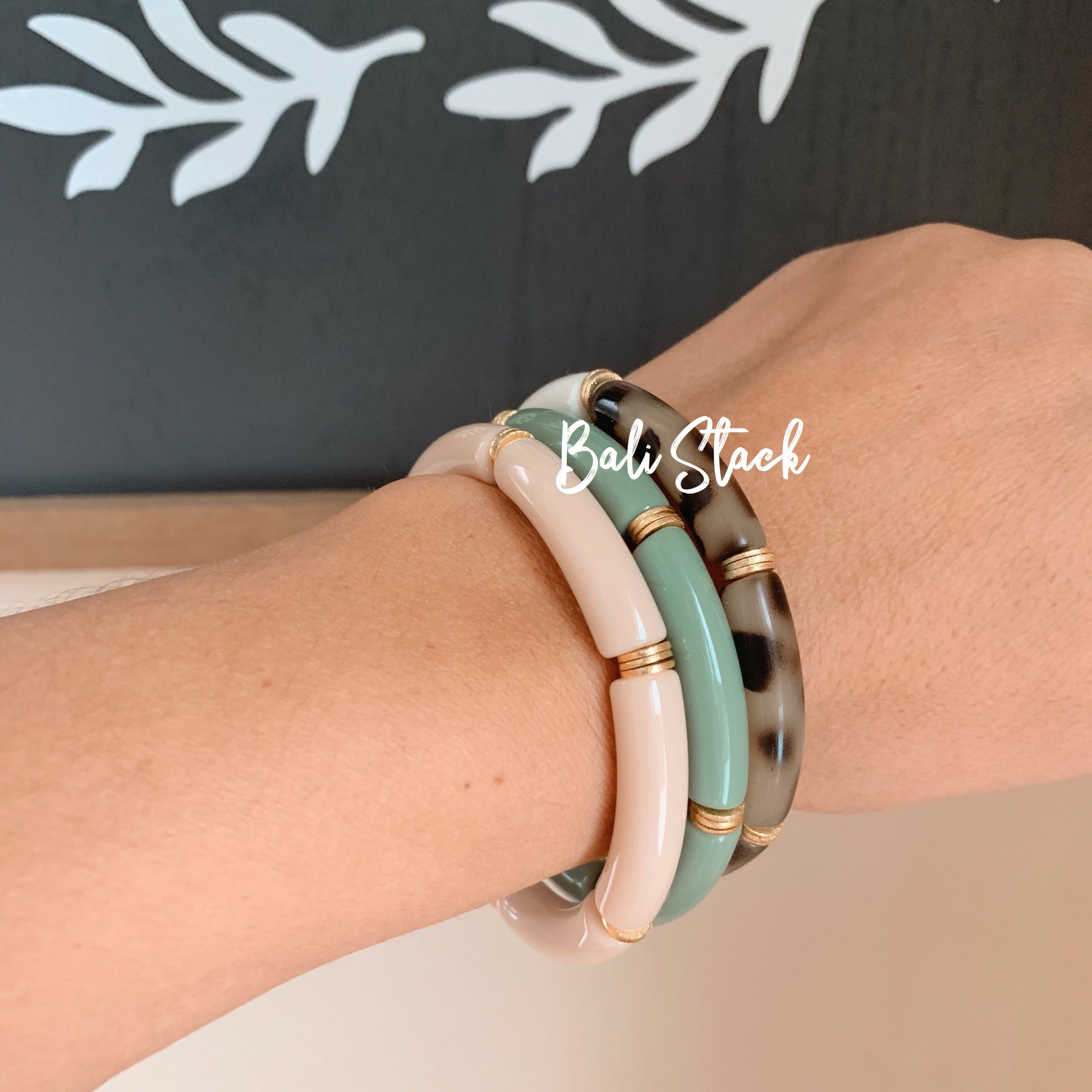 Part of our "Travel Collection", the BALI STACK is made with high quality beads (solid colors and leopard print) and beautiful 18K gold plated accents.