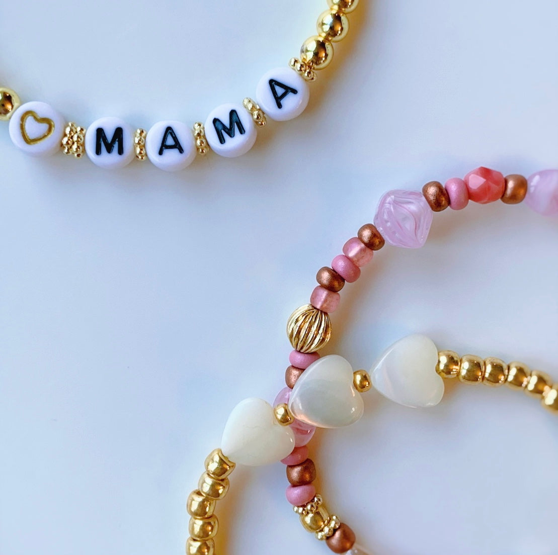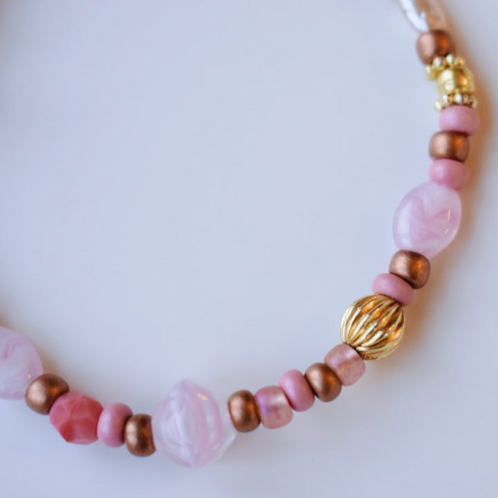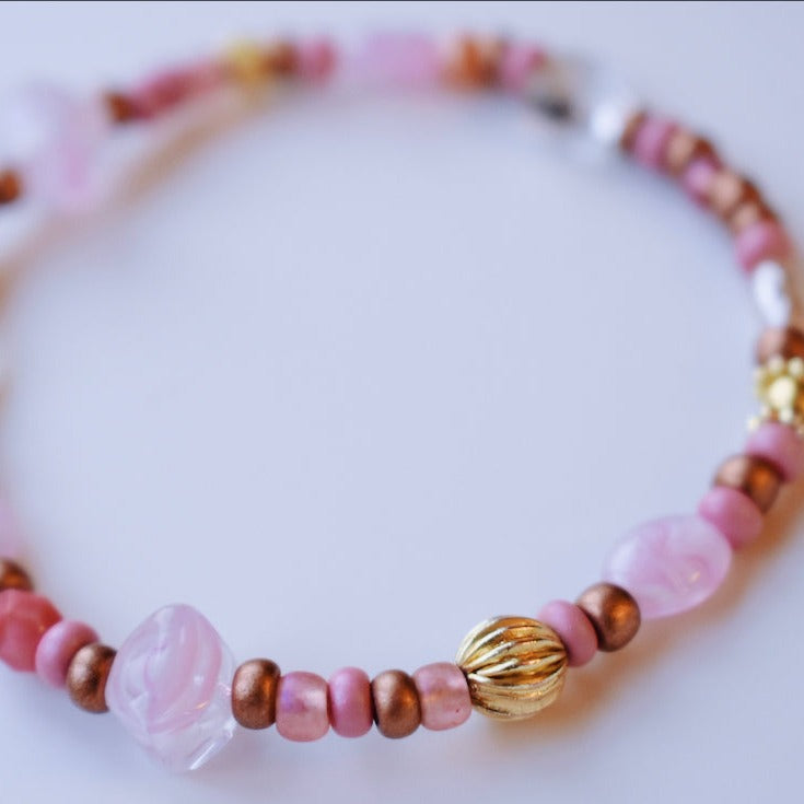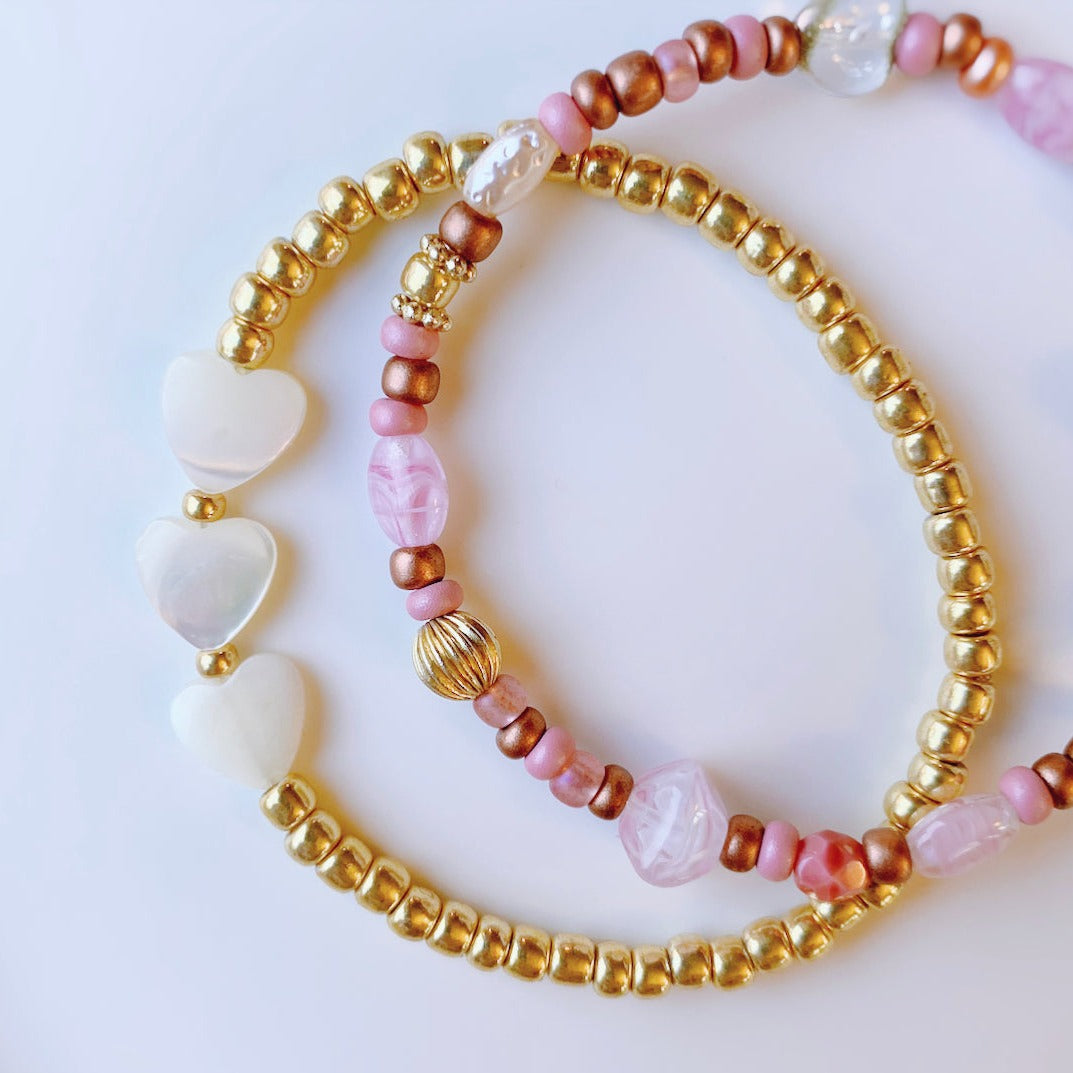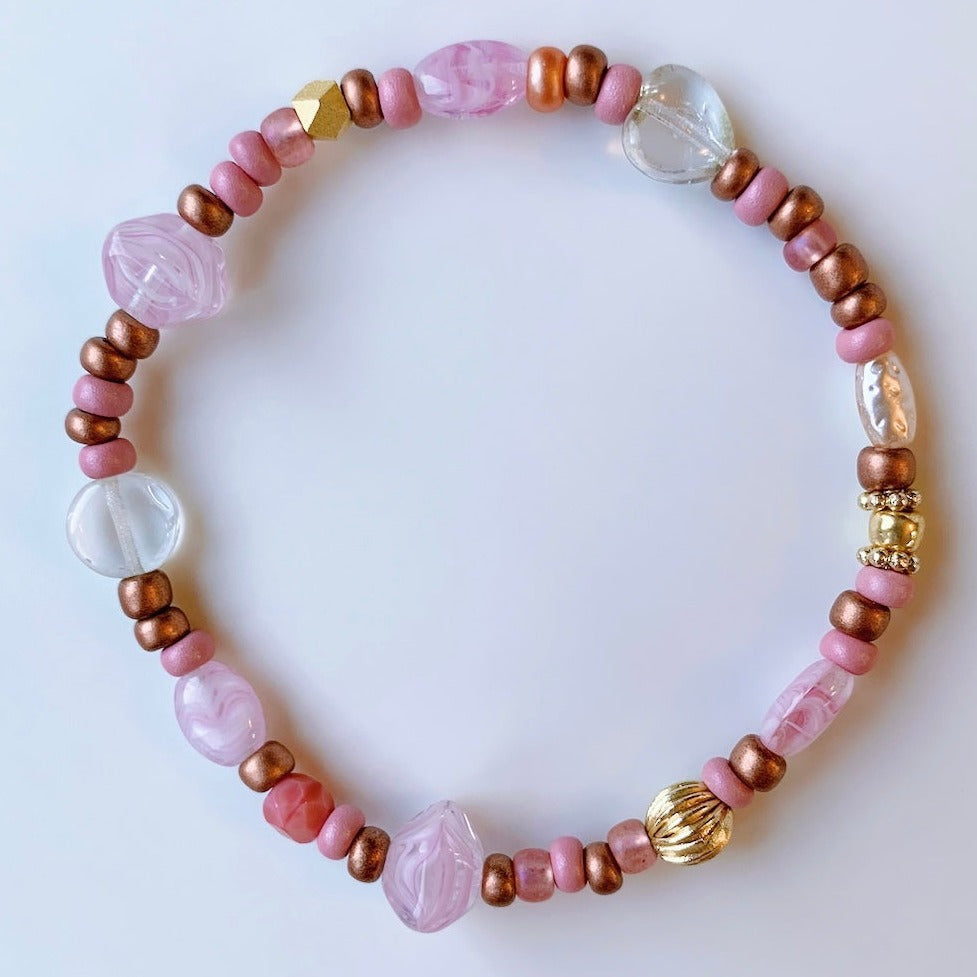 Soft pink tones, Satin gold accents... BLUSH is the perfect delicate piece to add to your bracelet stack.