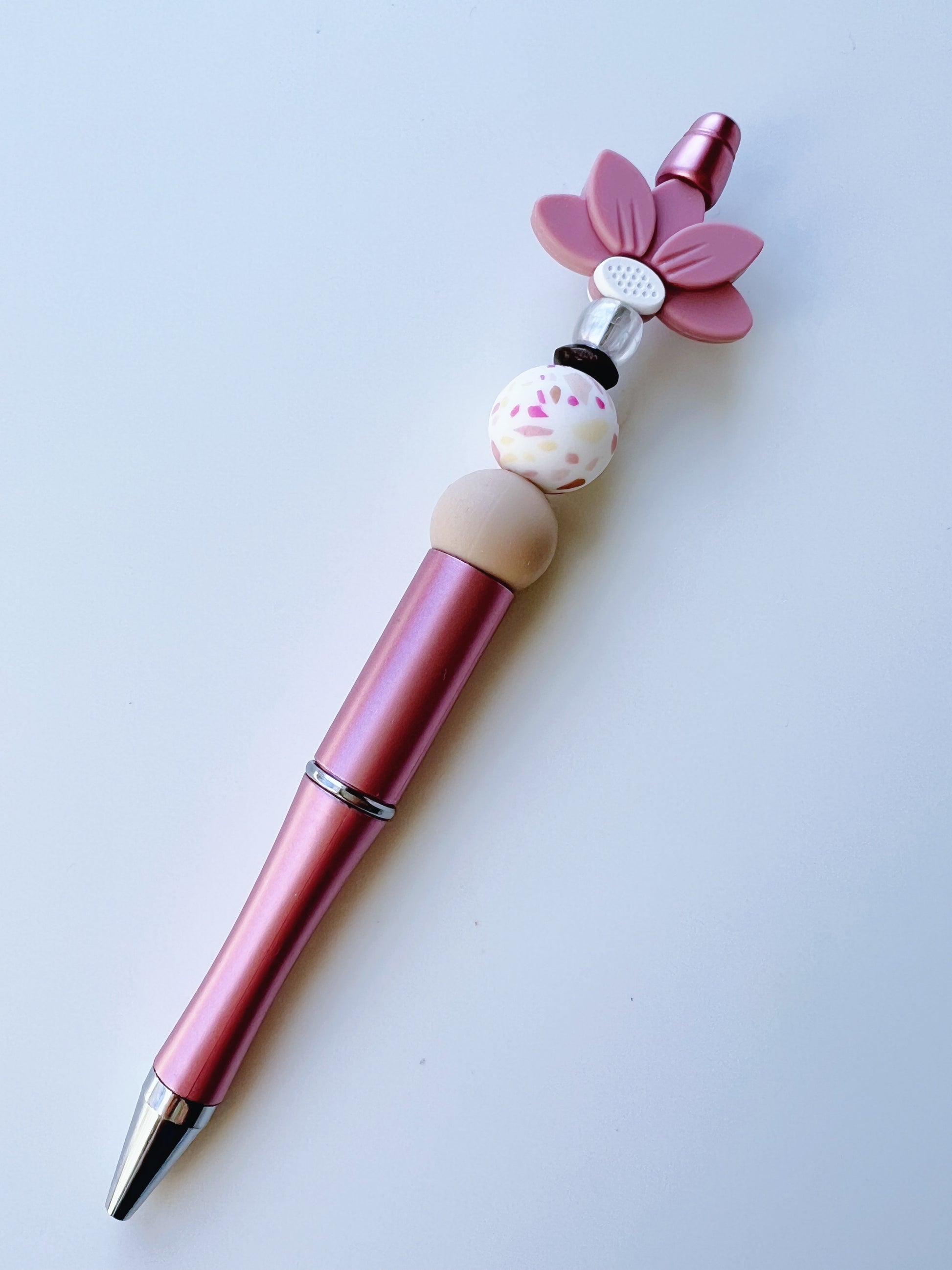Adorable decorative pen, adorned with decorative beads and a flower charm bead.