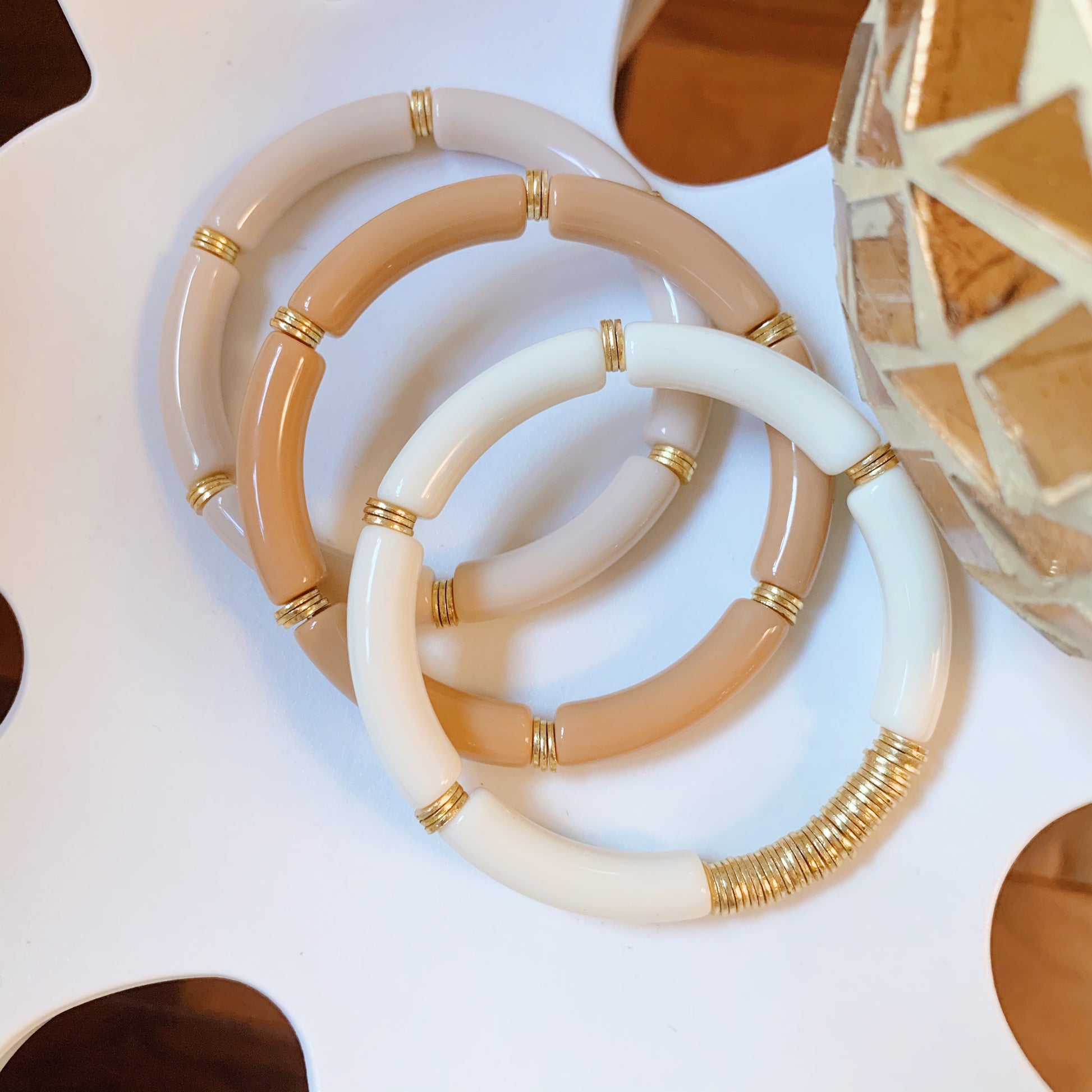For the lovers of neutral tones, this one is for you! This bracelet stack goes well with any color outfit.