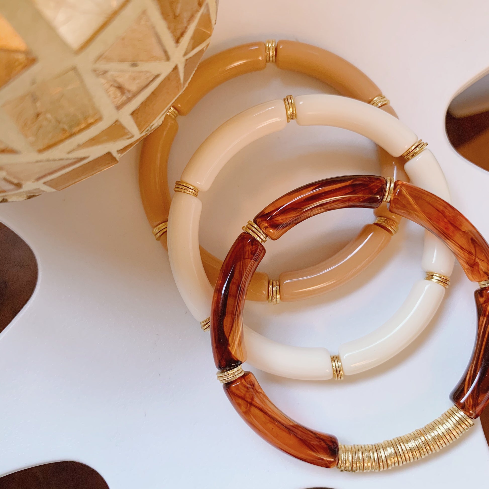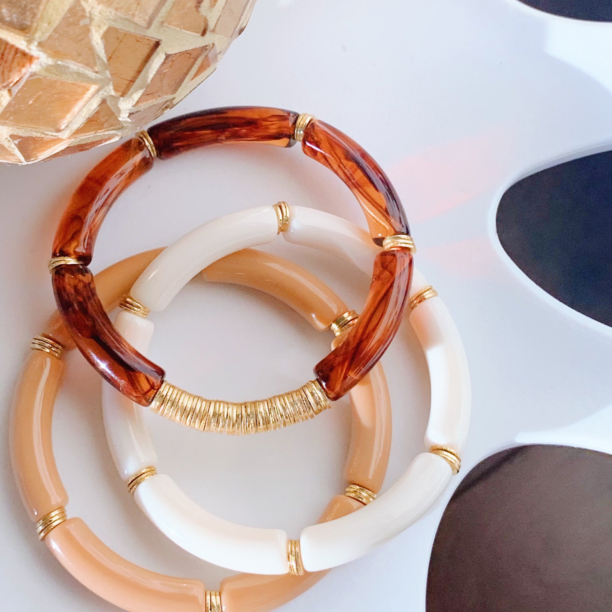 Part of our "Neutral Collection", the ICED COFFEE STACK is made with high quality beads and beautiful 18K Gold plated accents.