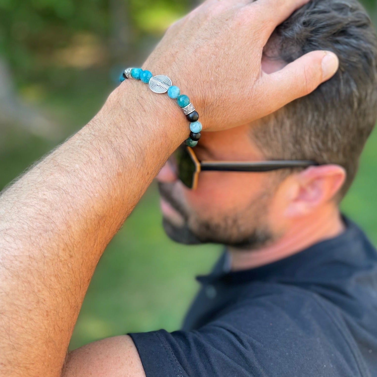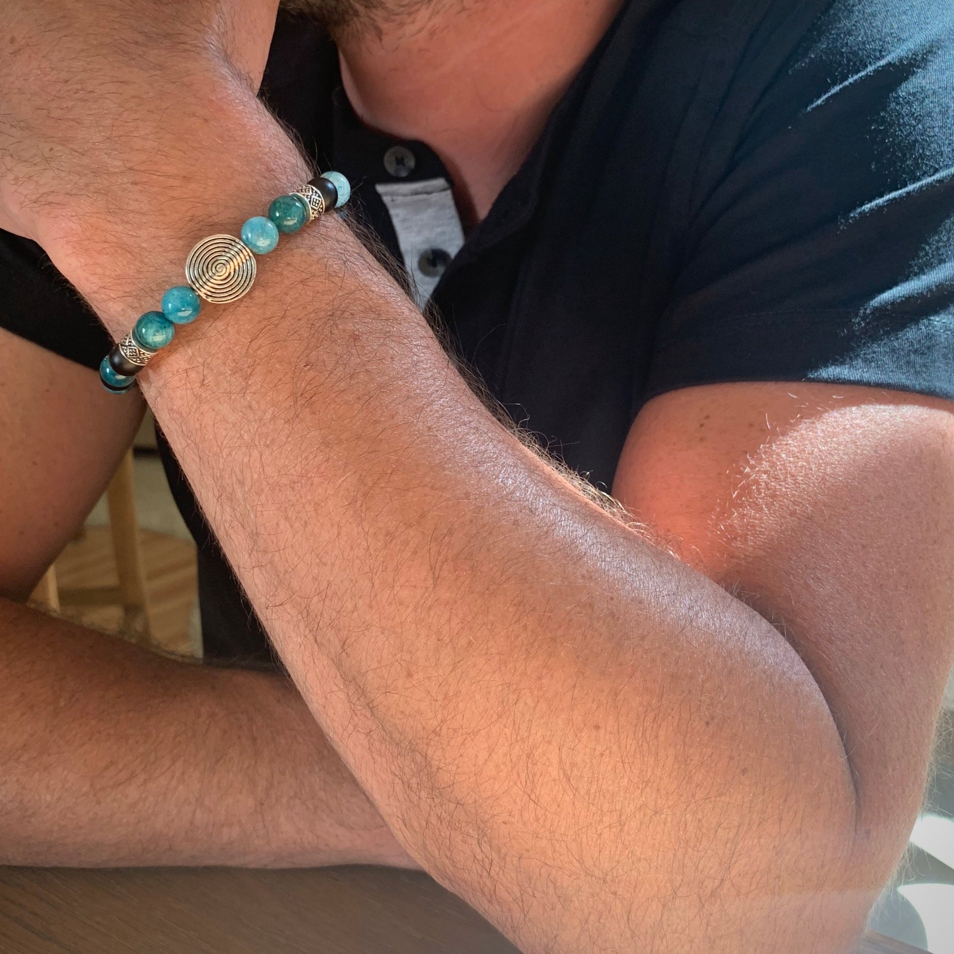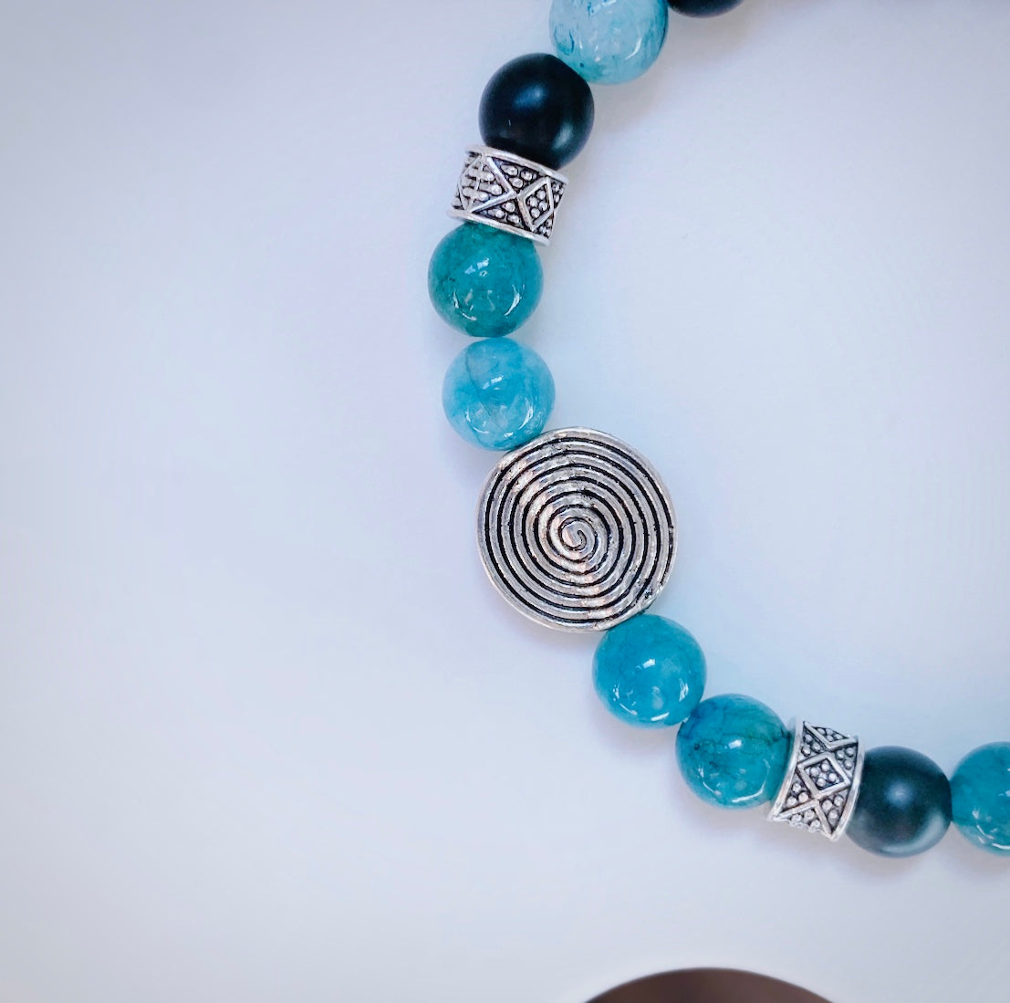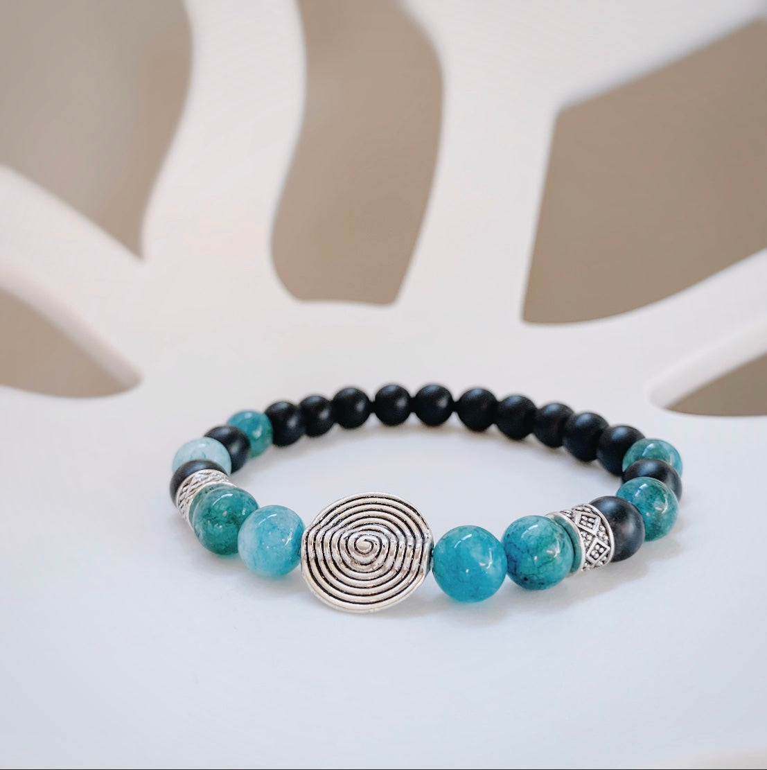 The name of this bracelet was chosen for the gorgeous ocean blue shades of the Apatite stone and the swirl silver bead symbolizing waves...