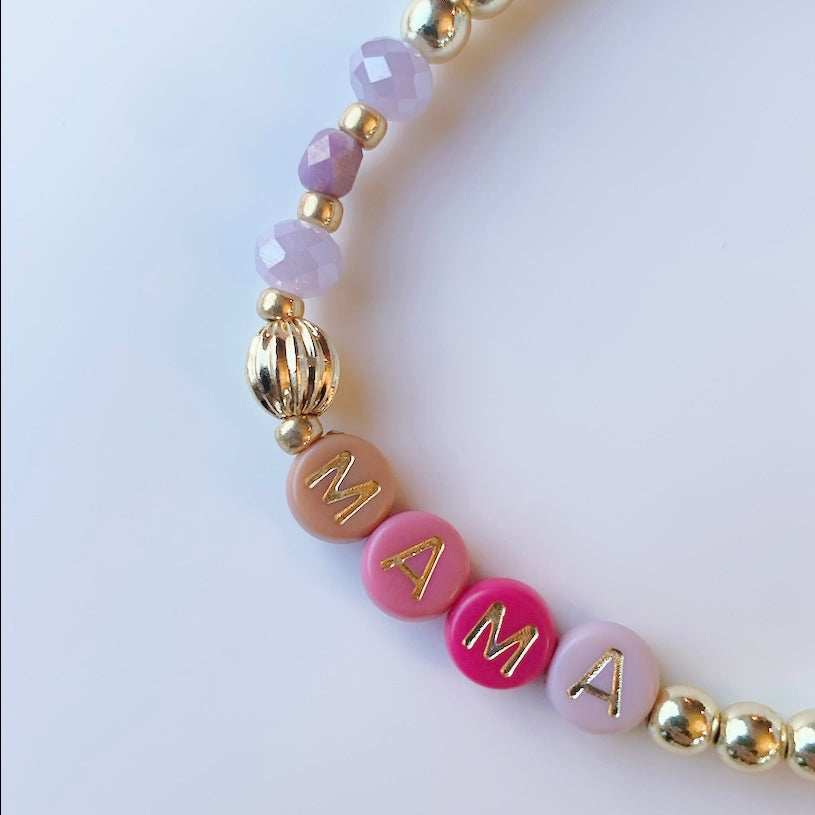 Our PASTEL MAMA bracelet is beautiful on its own or stacked with other pieces from our store. Treat yourself with this dainty layering bracelet or gift it to a mama who will love wearing it!
