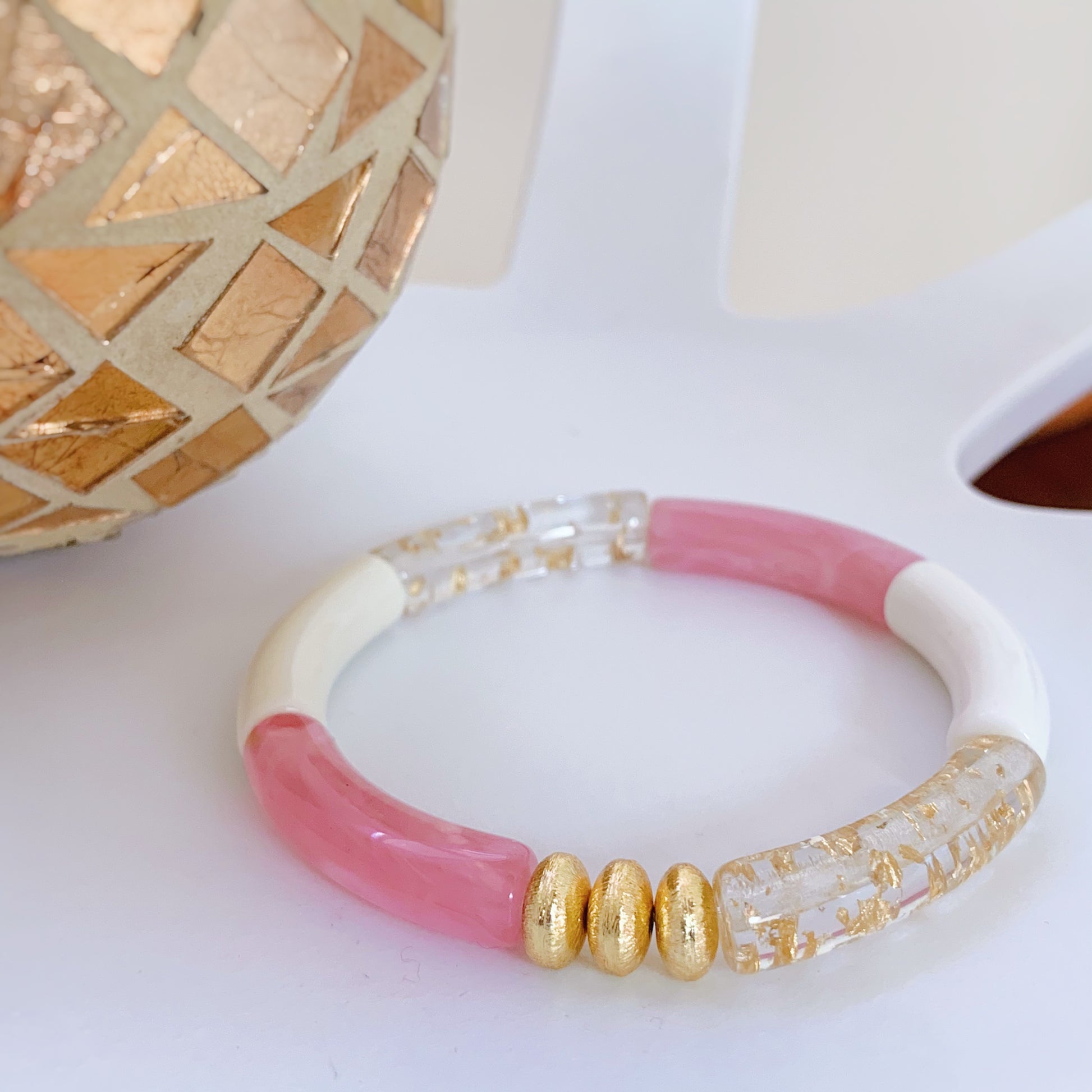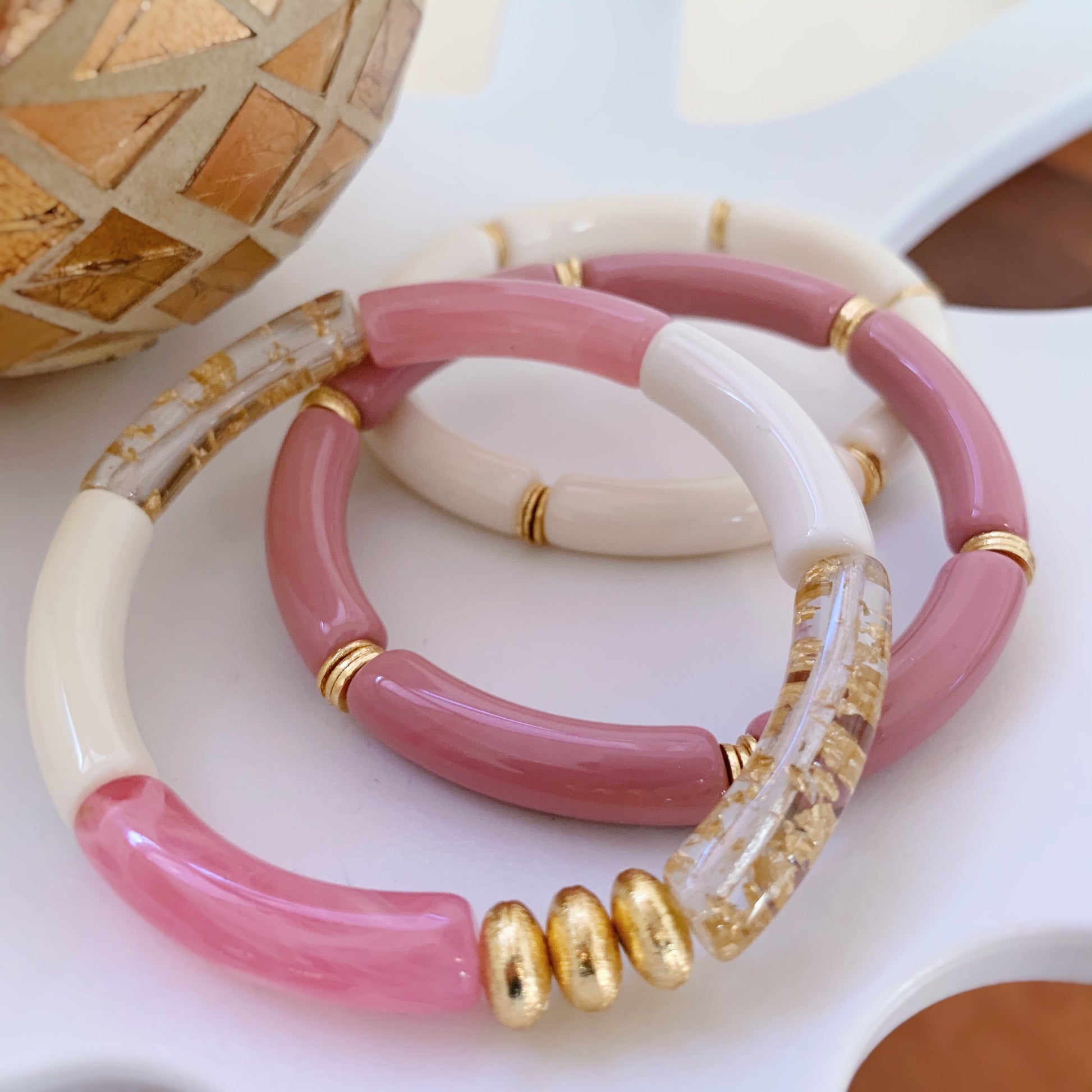Our SAKURA STACK is made with high quality beads, handmade gold foil beads, and beautiful 18K Gold plated accents.