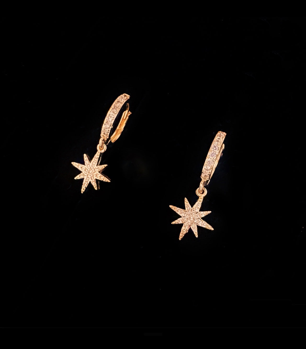 - Gold plated with genuine Cubic Zirconia (hoop and star charm)