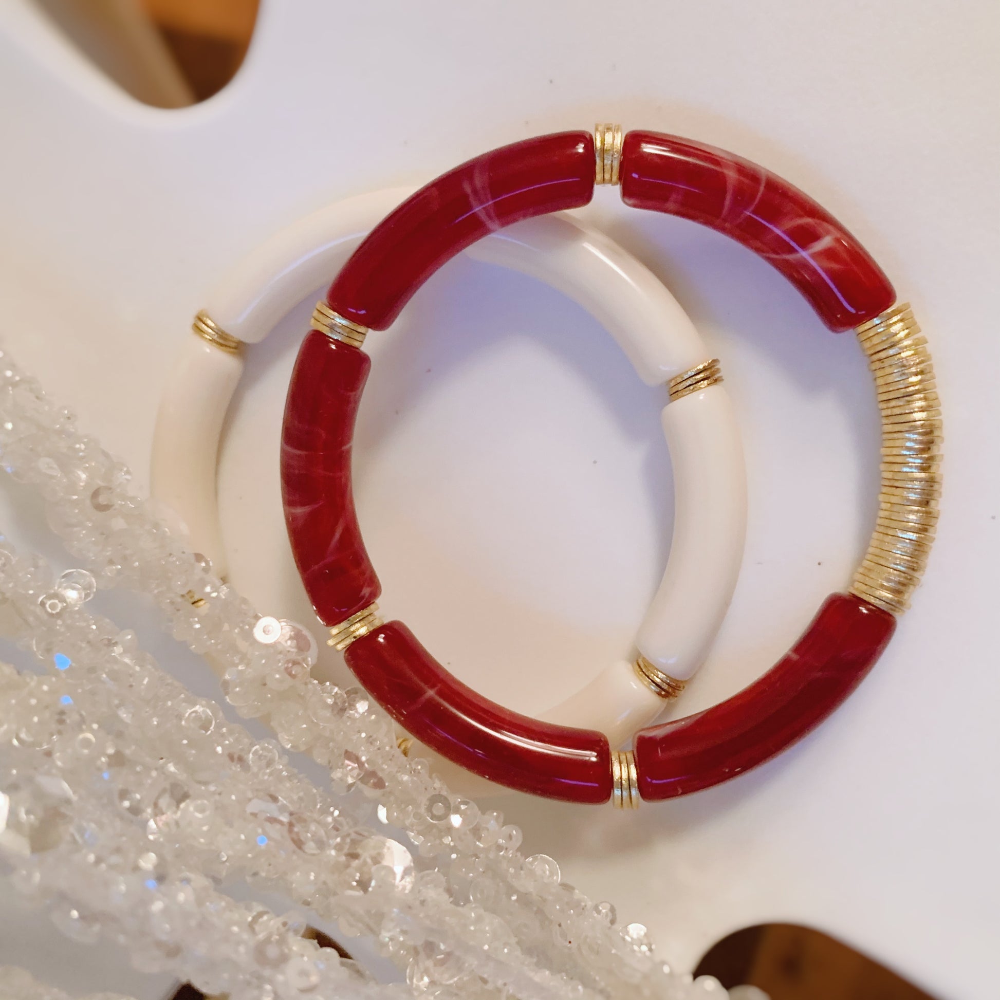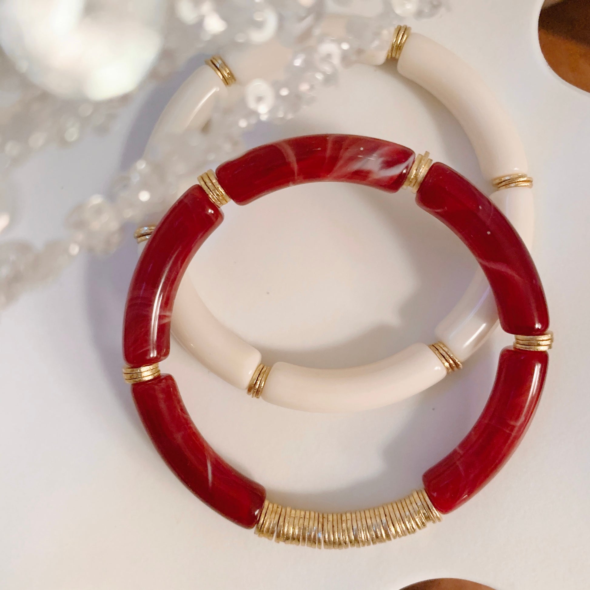 Part of our "Holiday Collection", the SANTA BABY STACK is made with high quality beads and beautiful 18K Gold plated accents.