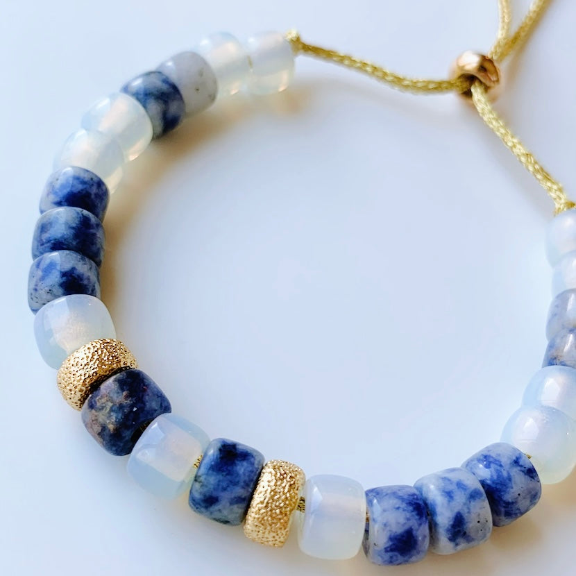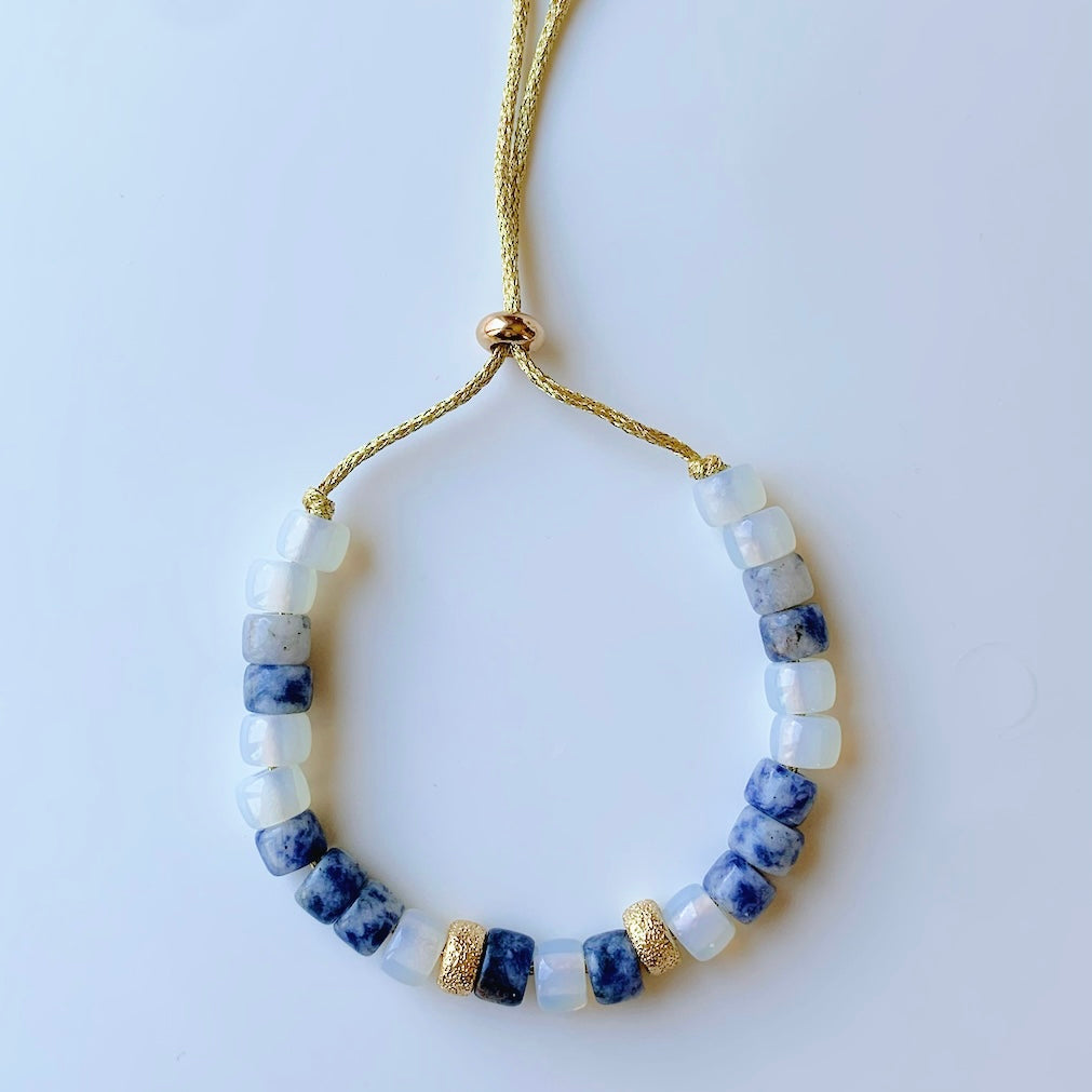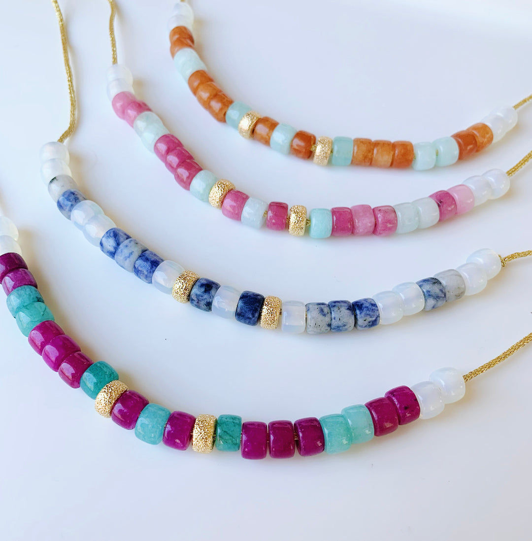 Colorful and Fun, THE TRENDY is made with semi-precious gemstones and gold accents, strung on a high quality cord. This designer inspired bracelet will be your go to jewelry for this summer!