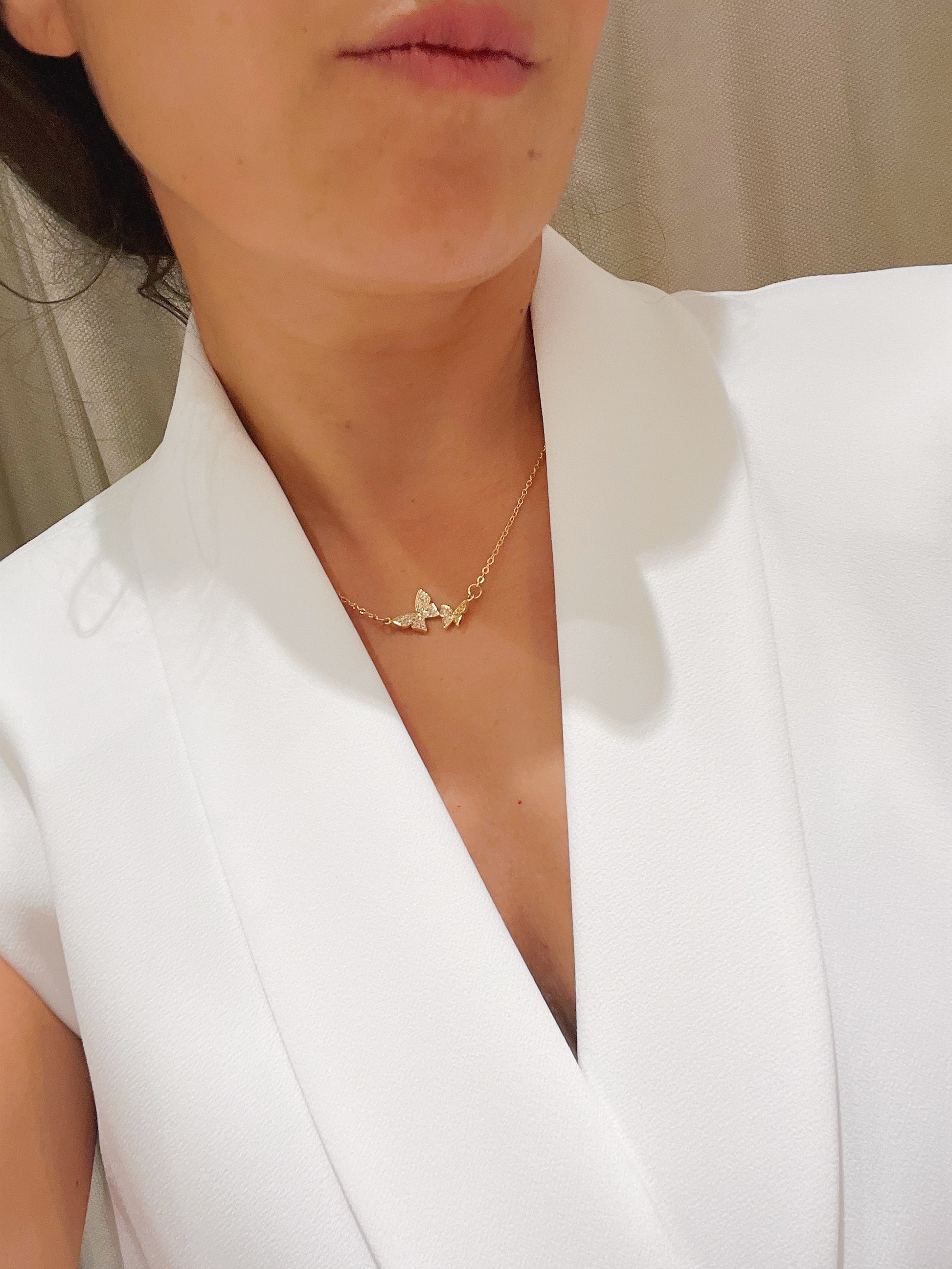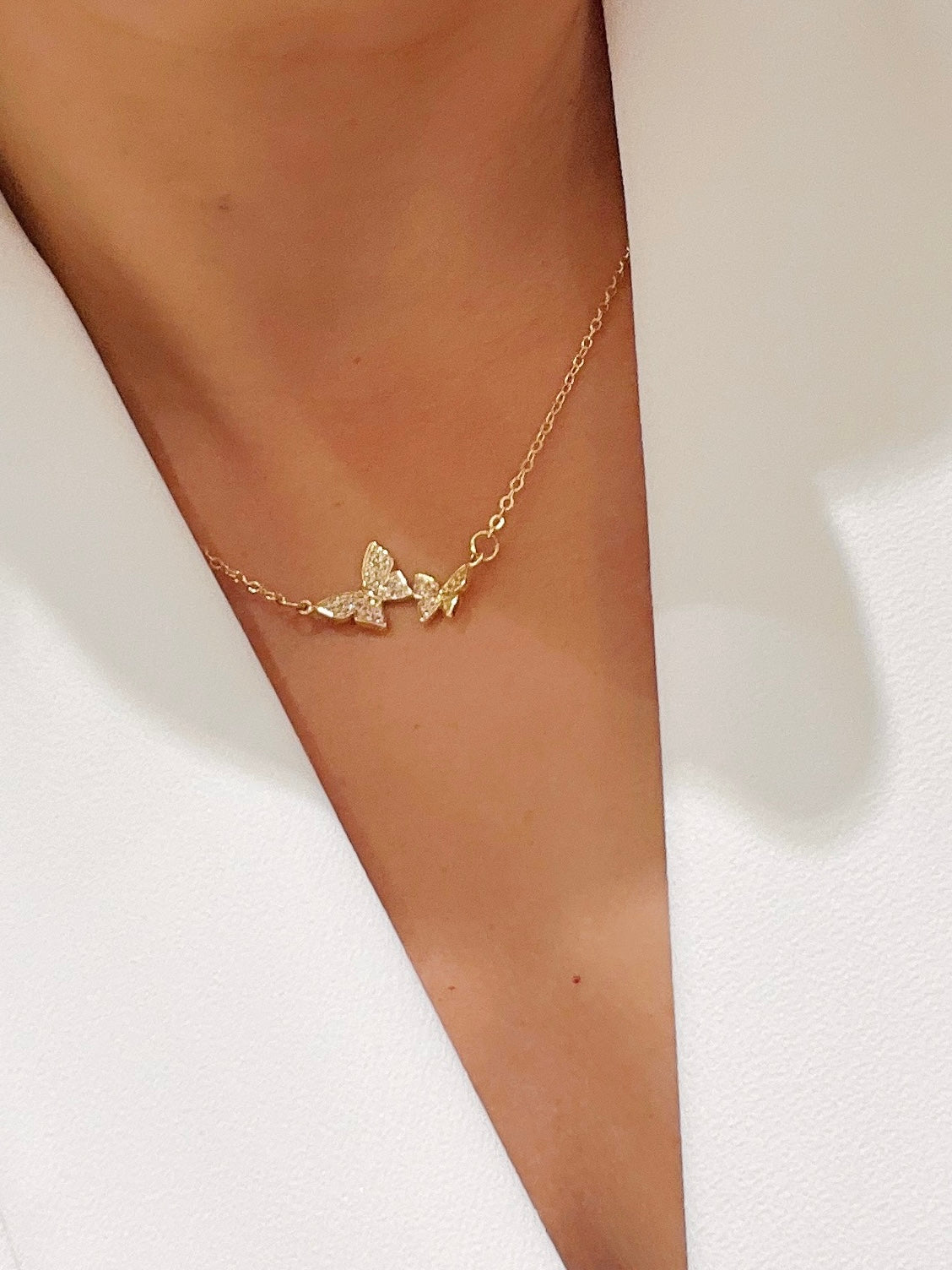 Beautiful double butterfly pendant mounted on a delicate chain.